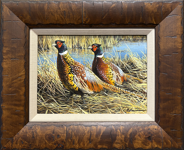 1992 Minnesota Pheasant Stamp Entry by Bob Hautman is available for sale as a framed acrylic painting with a 7 x 10 image size priced at only $1,800 framed as shown