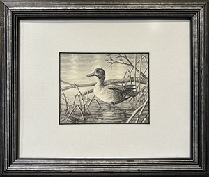 The first Federal Duck Stamp, designed by Jay "Ding" Darling in 1934 at President Franklin D. Roosevelt's request, depicts two mallards about to land on a marsh pond. In subsequent years, other noted wildlife artists were asked to submit designs. The first contest in 1949 was open to any U.S. artist who wished to enter. Sixty-five artists submitted 88 design entries that first year. The number of entries rose to 2,099 in 1981. This is the only art competition of its kind sponsored by the U.S. Government. Federal duck stamp prints and stamps for sale, Federal duck art prints for sale, waterfowl art prints for sale. Federals for sale, duck stamp art and prints for sale less