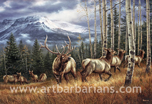 This South Dakota artist has been developing her natural talents and sharpening her skills since she was a young girl. Through her formal education and work as a commercial artist, Millette has learned to approach her work with vivacity and employ rigorous self-discipline. Whether painting elk, pheasants or chickadees, her mastery of skills is apparent. By carefully studying her subject matter, Millette realistically portrays each animal's physical structure and tone. Yet, her paintings offer the viewer more than a photo-realistic representation. The use of light and color, the composition, and the perspective of each complementing background reveal and reinforce the quintessential qualities of the animal.