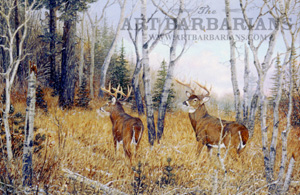Color and light are central to Doughty's award-winning paintings, but equally evident are the sense of proportion and naturalness with which he approaches his subject. He applies his concern for authenticity to his animal subjects as well. Experience as a taxidermist taught him attention to musculature and skeletal detail. He turns to references like full-mount deer manikins, the Milwaukee Public Museum, the Milwaukee County Zoo, a collection of zoological books and an accumulation of photos and sketches to ensure the accuracy of his subject's stance and movement.