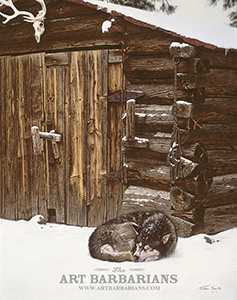 “Painting is ninety percent work,” says Tucker Smith. “The rest is talent, but talent isn’t something you’re simply born with. Talent requires a great deal of perseverance. Read more“Painting is ninety percent work,” says Tucker Smith. “The rest is talent, but talent isn’t something you’re simply born with. Talent requires a great deal of perseverance.” Smith is well known for his painstaking approach to art. He does research, paints on location, and labors at his easel until he feels the work is exactly right. “I suppose I’m a perfectionist,” he says, and then adds with his customary modesty, “but it turns out all right in the end, I guess.” Smith was born in St. Paul, Minnesota. As he grew up there, he developed an interest in drawing, but he didn’t think it was possible to make a living as an artist. It wasn’t until he attended the University of Wyoming that he seriously started to consider a fine art career. Even so, he worked as a computer programmer and systems analyst for ten years before making the courageous decision to become a full-time artist. Today Tucker Smith’s art is part of the permanent collections of such respected galleries as the National Cowboy Hall of Fame in Oklahoma and the American West Art Museum in Wyoming. Smith is a member of the National Academy of Western Art and is the recipient of many major art awards, including the prestigious Prix de West. Smith lives with his wife, Jean, on a small ranch in Montana’s Rocky Mountains. There they have raised two sons and many quarter horses. The boys are grown now and out on their own, and there are only a few riding horses left in the stable, but the Smiths still live a picturesque life that is well suited to Tucker’s reputation as one of the country’s finest artists of the West. less