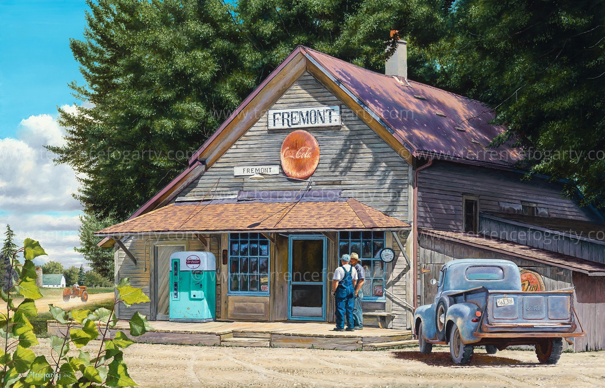Original Painting - Freemont Store by Terrence Fogarty The original oil painting is available for sale. It has a 18 x 28 image size and is priced at $8,500 framed.