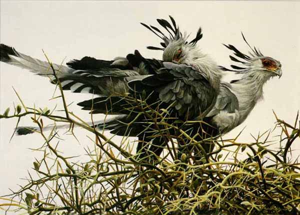 At the Nest - Secretary Birds by Robert Bateman