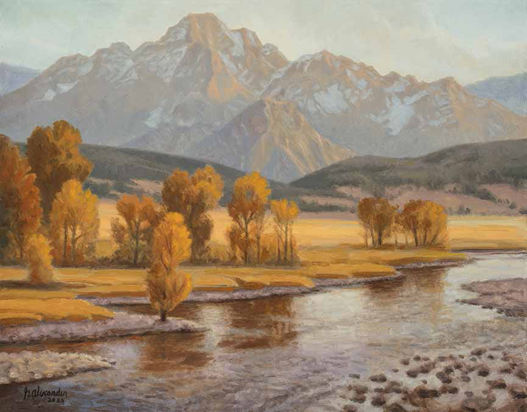 Western Landscape by Greg Alexander is available for sale as a framed original oil painting with a 11 x 14 image size priced at $650 framed.