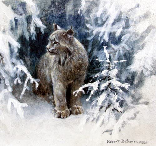 "The lynx is a classic cat - a silent animal of the night. In the winter, he is in his element. With his huge soft paws, he can prowl noiselessly on top of the deep snow. His prey, the snowshoe hare, has competing equipment with his furry hind feet. The lynx will need all of his skills and plenty of luck in order to surprise a hare." ~ Robert Bateman