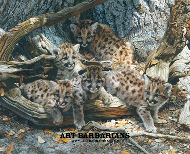While The Cat's Away - Cougar Cubs by Carl Brenders is available for sale as a signed and numbered limited edition of only 950 art prints with a 22-1/2 x 27-3/4 image size priced at $195 unframed.