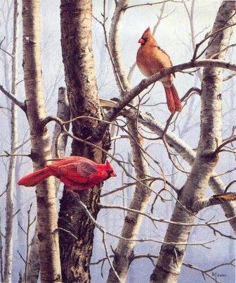New Day - Cardinals by David A. Maass is available for sale as a signed and numbered limited edition print with a 17 x 14 vertical image size priced at $125 unframed.