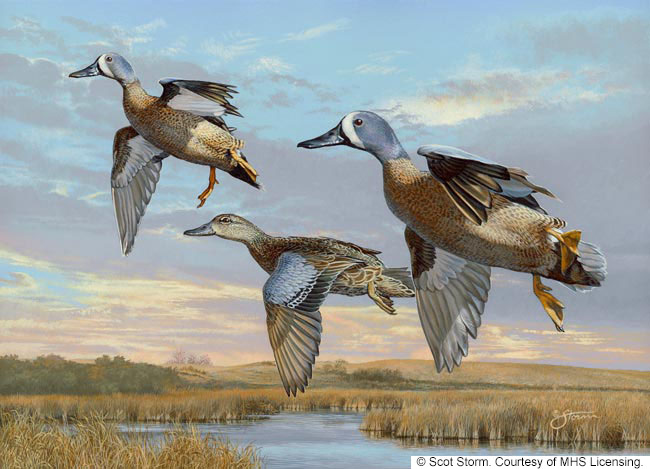 This is Bruce Miller's 2010 federal duck stamp entry. Now is your chance to own a piece of history. Bruce Miller has won the federal duck stamp in 1993 with a painting of a pair of canvasback ducks beating out over 600 other artists.