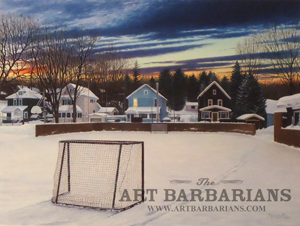 Edge Of Town - Hockey And Great Horned Owl By James Meger